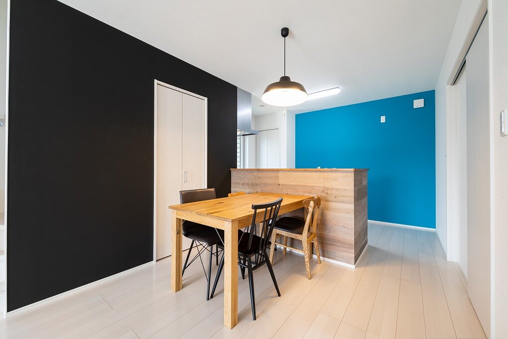 シンプルな造りながらもアクセントクロスはお施主様のこだわりが光ります。