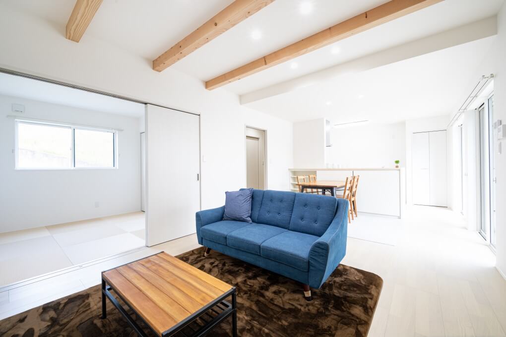 家族全員がくつろげる広いリビングが魅力なお家。